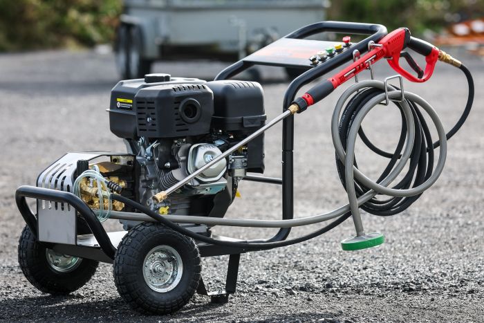 13HP Petrol OHV Engine ▪ Max Pressure: 3600PSI, 248 bar. ▪ Water Flow: 18LPM ▪ Weight: 60kg ▪ 8 Metre High Pressure Hose ▪ 10" pneumatic wheels