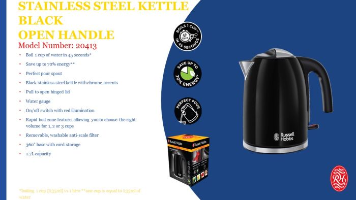 Rapid boil Zone Feature allowing you to choose the right volume for 1, 2 or 3 cups