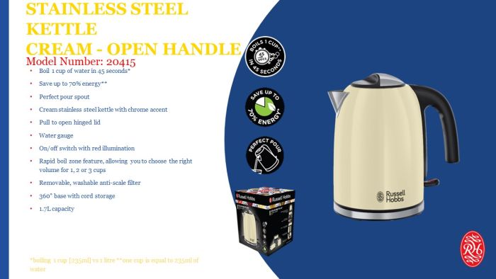Russell Hobbs Colours Plus Cream Steel Kettle