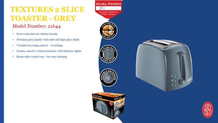 Russell Hobbs Textures 2 Slice Grey Toaster