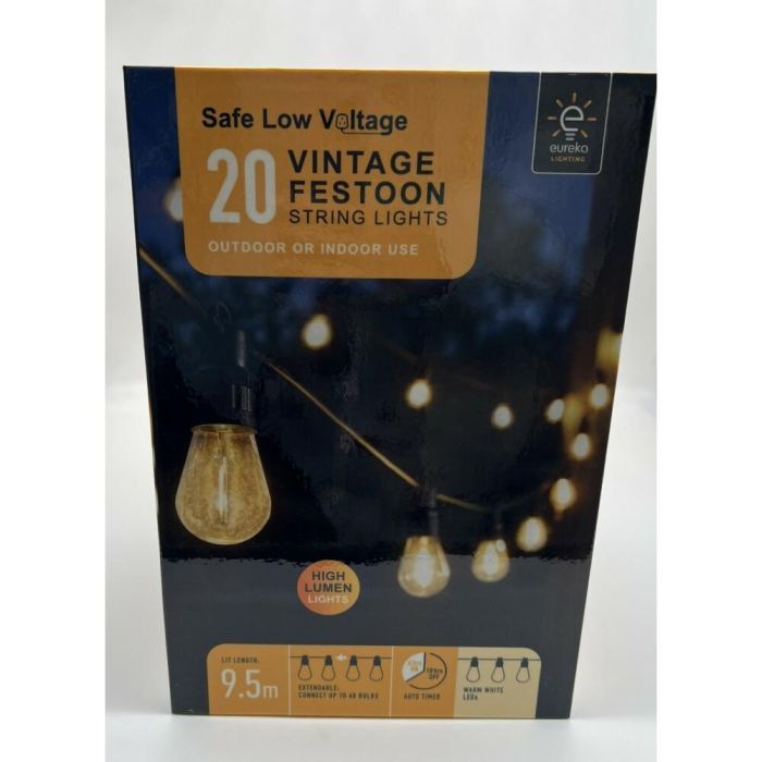 Add atmospheric lighting to any outdoor space with these connectable low-voltage Smart Solar Vintage Festoon String Lights - Set of 20. Connect up to 60 bulbs together with an IP44 transformer to achieve incredible lighting effects. Each set is 9.5m in length and features warm white LED clear bulbs with a spacing of 50cm between each bulb. A great product for gardens, parties, events, weddings, and all year-round occasions.\n