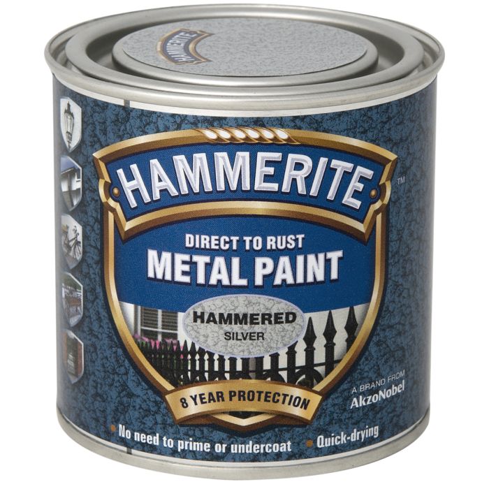 250ml Hammerite Metal Paint Hammered Silver