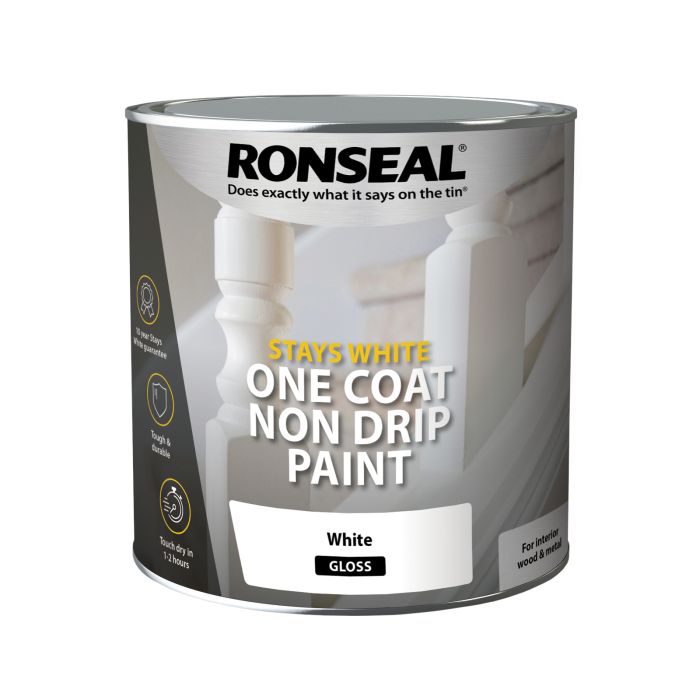 Ronseal 2.5ltr One Coat Stays White Gl0ss Paint