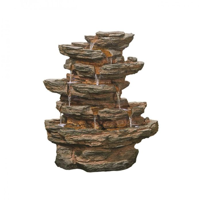 The Kelkay Red Rock Springs Water Feature is suitable for any garden setting. The water cascades from the top, where it then separates through different spouts within the feature, creating a soothing trickling sound.The water gathers in the reservoir where the water is then recycled for a continuous flow. The LED lighting with enhance the look of this feature, especially at night, giving the water a glowing look.