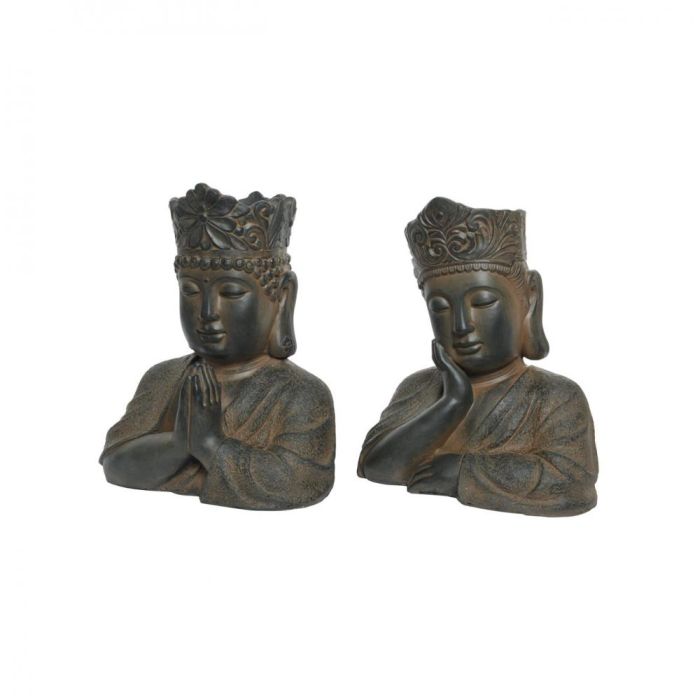 The Buddha Head Planter - Brown Wash - 2 Assorted will bring peace and tranquility to your home or garden. This Eastern-inspired ornament depicts the traditional Buddha in elegant head dress.