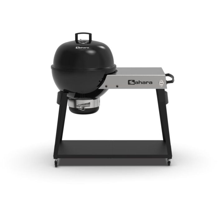The Sahara Forge Host Charcoal BBQ is built for both performance and durability. It features a high-grade stainless steel cooking grill and the innovative Sahara Grill Insert System for versatile cooking options. The stainless steel charcoal tray and porcelain enamelled hood and fire bowl ensure long-lasting use, while the hood-mounted temperature gauge helps you maintain precise heat control. With smart touches like a quick-action ash collection system, fine-adjust air control vents, and a solid frame with castor wheels, this BBQ is as functional as it is stylish. Additional conveniences include a stainless steel worktop, large lower shelf, trolly handle for ease of movement, hood hanging hook, utensil hooks, and a handy bottle opener to keep everything within reach while you grill. 10 year limited warranty.