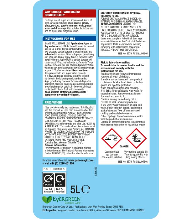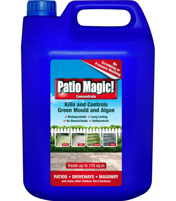 Patio Magic! is a hard surface treatment that kills and controls green mould, algae and lichens across large areas quickly and efficiently - with no scrubbing or pressure washing needed. Patio Magic! works in days and lasts for months.