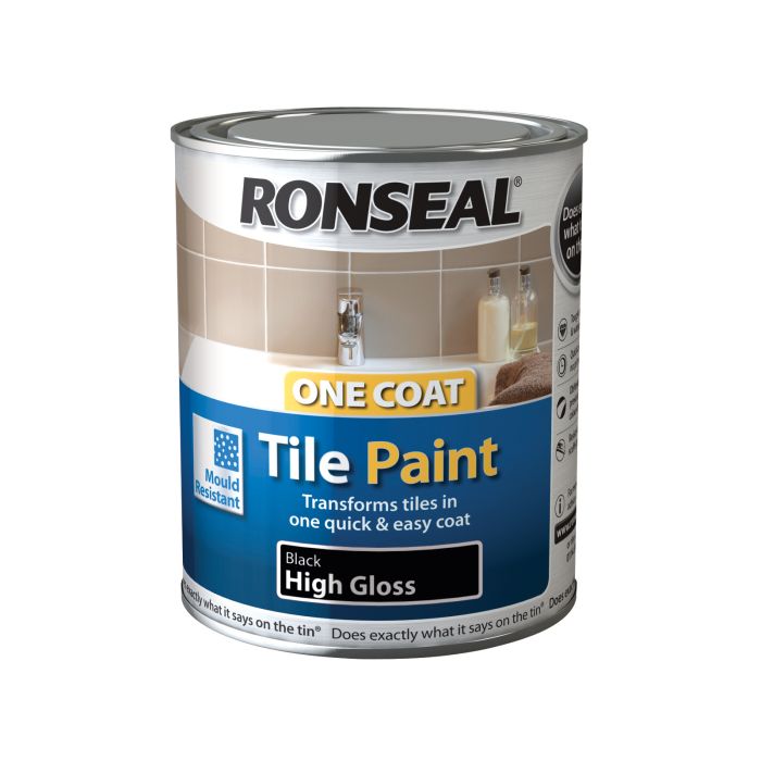 Ronseal 750ml One Coat Tile Paint High Gloss Black