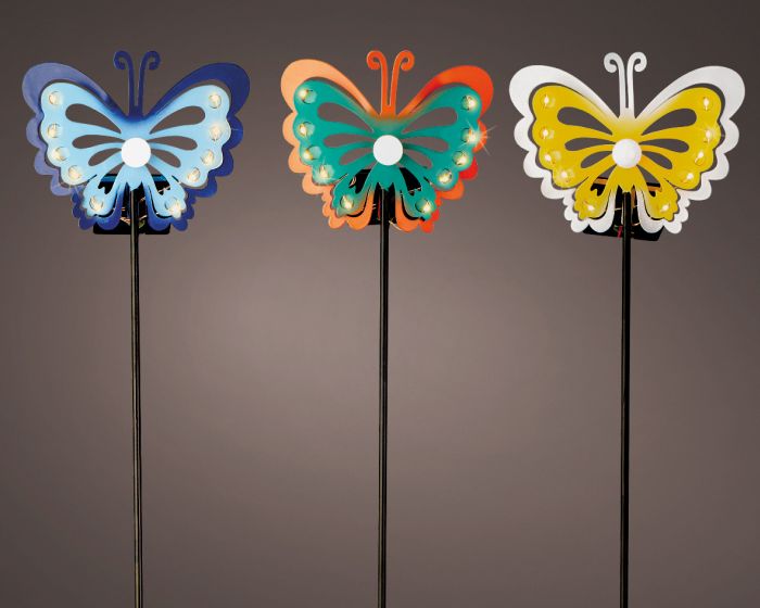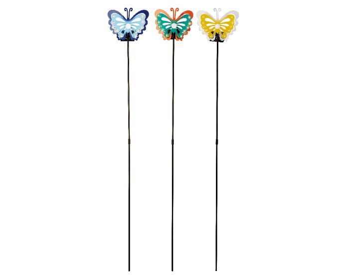 Solar Stake Light Iron Butterfly 3 Colours Assorted