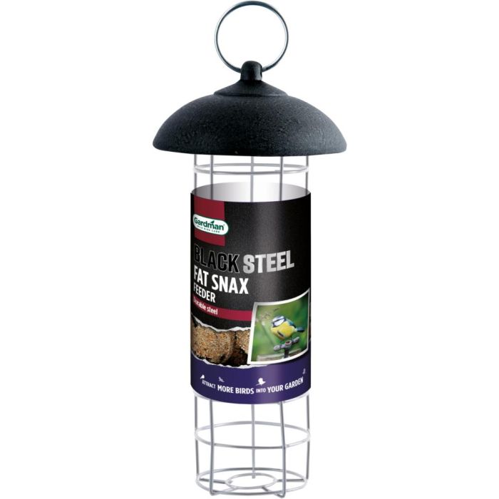 Gardman Black Steel Fat Snax Feeder is a durable metal feeder designed especially for Fat Snax.Quick-release top and base for easy filling and cleaning. FeedSafe uses Biomaster antimicrobial technology preventing the spread of microbes and germs. Holds x4 Fat Snax.