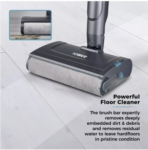 POWERFUL FLOOR CLEANING The powerful brush bar expertly removes deeply embedded dirt & debris, then vacuums up water with ease for fuss-free cleaning