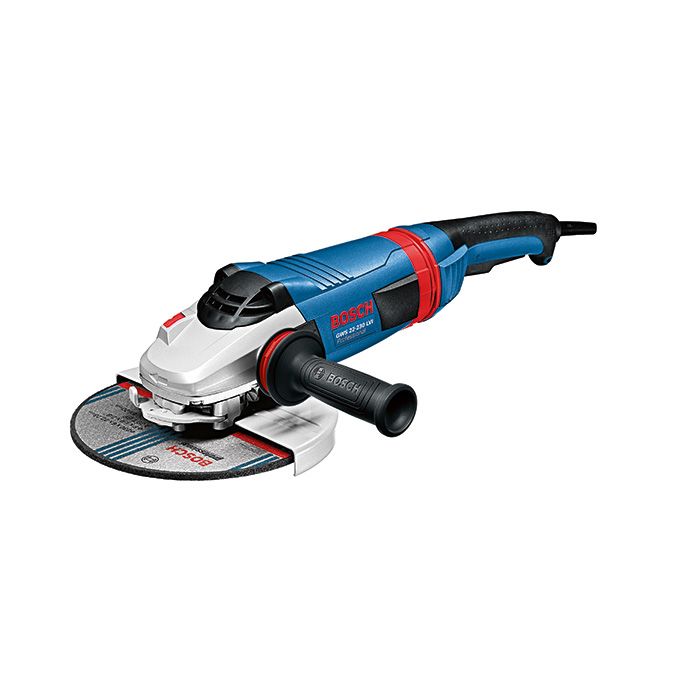 Rated power input: 2.200 WNo-load speed: 6.600 rpmGrinding spindle thread: M 14Main handle: ShaftDisc diameter: 230 mmWeight: 5.4 kgStarting current limitationChampion motorKickBack StopSmooth startAnti-rotation protective guardVibration Control main handleRestart protection