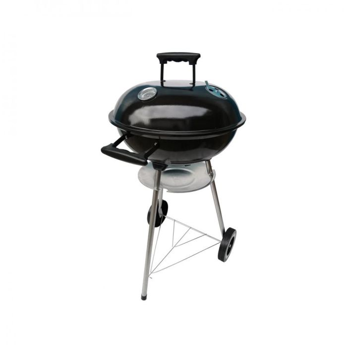 The Charcoal Kettle BBQ features a black porcelain enamelled bowl and lid with 2 handles, an air vent, and a temperature gauge on the lid. It also comes with two sturdy wheels for easy mobility, and a wire shelf underneath for keeping your BBQ essentials within reach. The built-in ash plate helps keep your patio or garden clean and tidy by collecting any falling ash. The 41cm cooking area is ideal for cooking for up to 4-5 people.