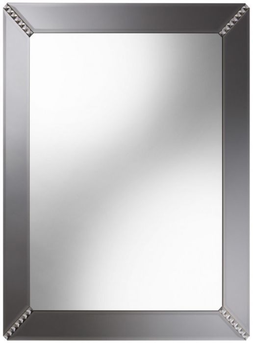 A rectangular bevelled edged mirror with designer smoked glass frame. Mirror can be mounted landscape or portrait