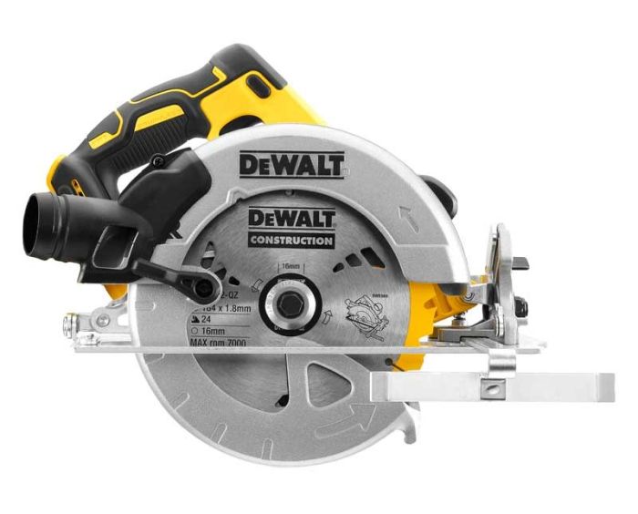 The DEWALT DCS570 XR Brushless Circular Saw is ideal for general purpose ripping, cross-cutting and bevelling, for wood and other construction materials. It has a high torque brushless motor for improved durability and power on job site cutting tasks and joinery materials. With a precise cutting depth scale, up to 65mm and a variable bevel angle, up to 57°. Its stable block construction provides low vibration running and increased service life. With an additional handle for safe two-handed work. Specifications: No Load Speed: 5,500/min. Max Cutting Depth @90º: 64mm Blade: 184mm, 16mm Bore Bevel Capacity: 57°