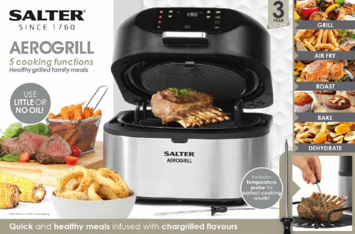 Cook Quick And Healthy Meals Infused With Chargrilled Flavours 5 Cooking Functions: Grill, Air Fry, Bake, Roast Or Dehydrate Incudes Temperature Probe For Perfect Cooking Results Every Time 1760w Power 5.2l Capacity Adjustable