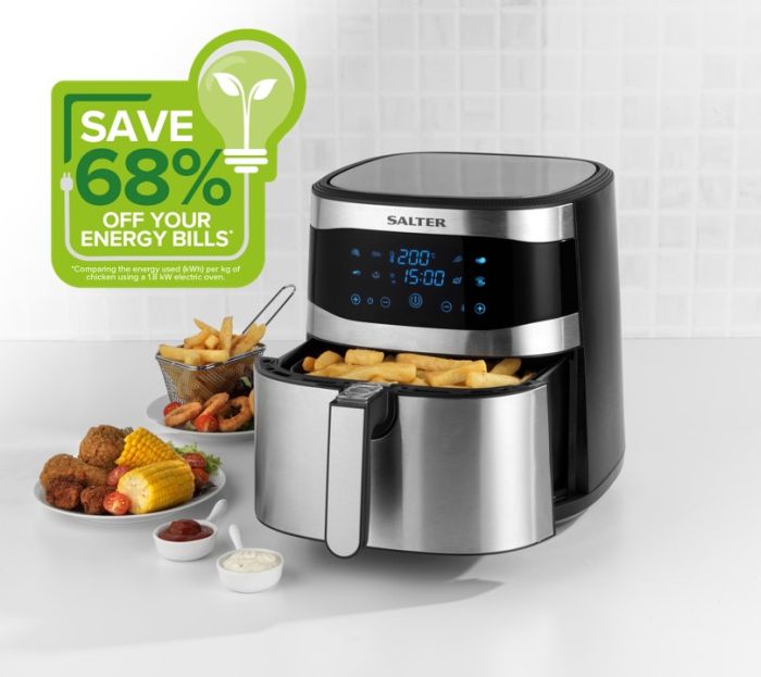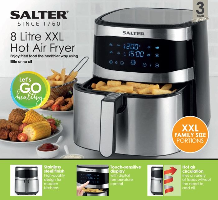 1800w Power Capacity 8 Litre Capacity 60 Minute Timer Digital Controls With 8 Frying Presets Touch-Sensitive Displaywith On/Off Button Automatic Shut-Off With Ready Aleart Removeable, Non-Stick Coated Cooking Basket Stainless