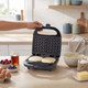 Power and ready indicator lights clearly show when the waffle maker is heating and ready to use, while the easy-carry handle and compact 750W design make it simple to move, store and use daily.