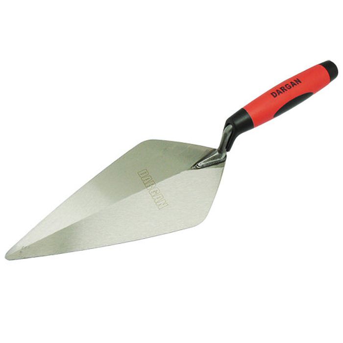 Large Bladed Brick Trowel designed for Block Layers, and for use in repairing or replacing Weathered Joints. Hardened High Carbon Steel Blade with Comfortable Durasoft Handle.