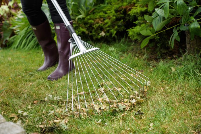 Kent & Stowe Expanding Lawn and Leaf Rake made with 15 steel tines with flat tips to make light work of collecting leaves.
