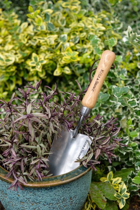 A traditionally styled, high quality Kent & Stowe Hand Trowel made from stainless steel and beautiful ash wood. Featuring a cranked shaft to protect knuckles during work, this tool also has quality guaranteed with its 15 year guarantee.