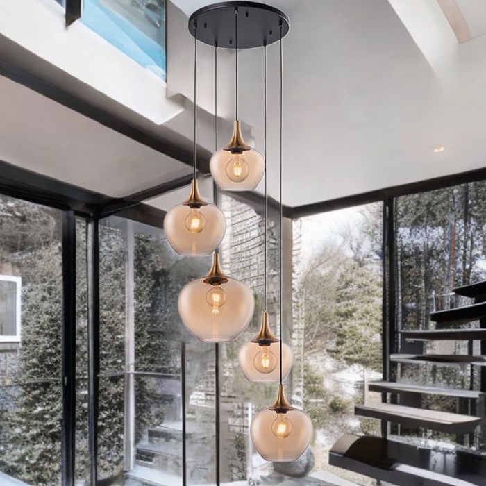 5L BERKLEY CLUSTER GLASS PENDANT (Amber Glass) H min1000 – max3000 x D600mm Wattage 5 x E27