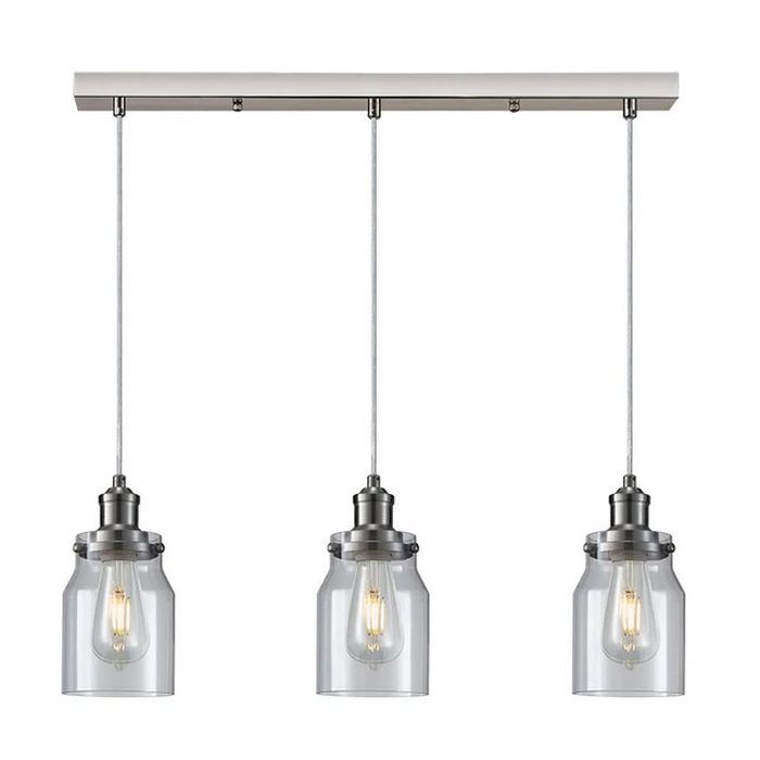 Houston 3 Pendant Satin Nickel Light Fixture With Clear Glass