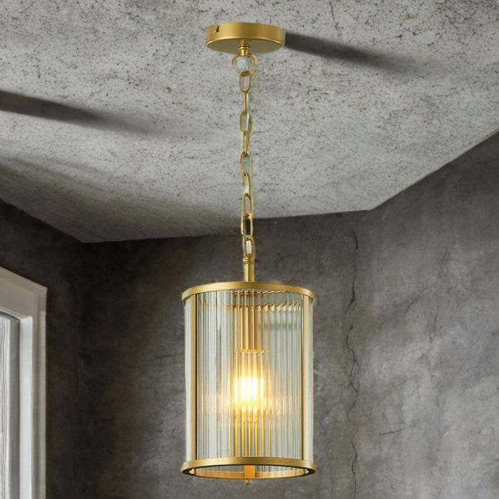 Carter Single Pendant Painted Gold & Ribbon Glass Ceiling Light