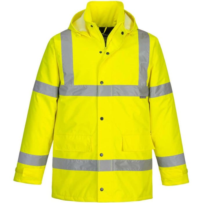 This fully certified waterproof jacket is a popular option across many industries. Hard-wearing, functional and packed full of features including a drawstring hood, studded storm flap and multiple storage pockets.