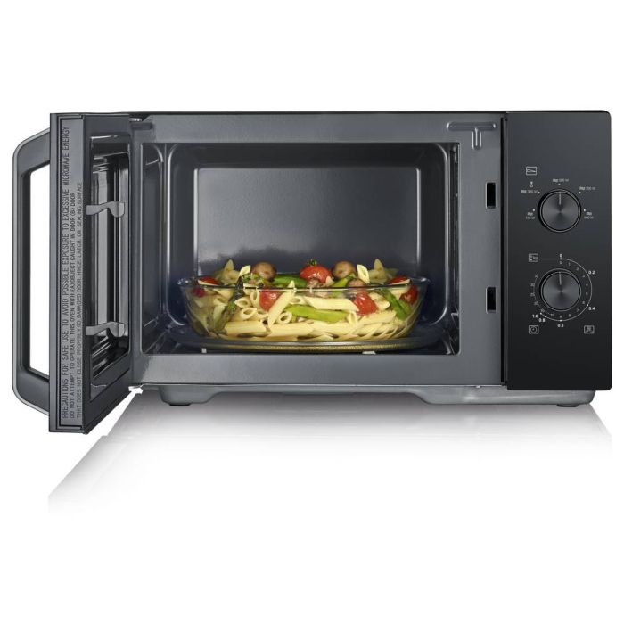 2-in-1 Microwave with ceramic bottom and grill Perfect heating, cooking and baking without a turntable is possible thanks to the SEVERIN microwave’s built-in ceramic base technology. The grill and ultra hot air functions also make it easy to prepare au gratin dishes and grill directly in the microwave.