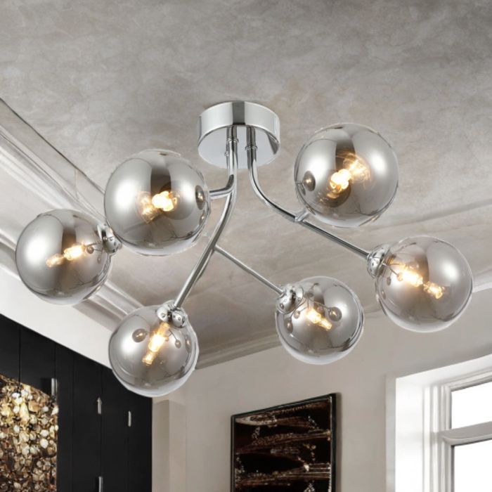 Nasa 6 Arm Surface Fitting Ceiling Light - Polished Chrome Finish With Smoked Glass