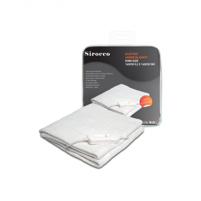 The Sirocco Electric Under Blanket - King is ideal for cold winter nights. It features three heat settings ensuring you can find the right temperature to keep you warm. It has overheat protection allowing you to use the electric blanket all night without the worry of overheating. This under blanket is machine washable and features a detachable cord and single controller for when you want to wash your blanket. It also features a neon light to allow you to see when the under blanket is powered on.
