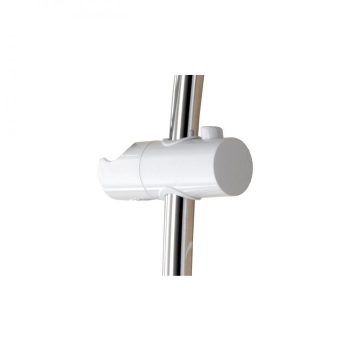 The Triton alfie slider for 19mm rail is a shower head holder. It is white in colour and is a spare 19mm slider for the round curved Triton rail kit.