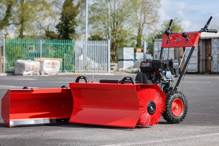 Loncin G200f Petrol 4 Stroke Engine 196cc ▪ 3L Fuel Tank Capacity ▪ 5 Speed + 2 Reverse Gears ▪ 80cm Working Width ▪ Net Weight: 78kg ▪ 13” Pneumatic tyres ▪ Robust & easy to manoeuvre ▪ Ideal for clearing paths, driveways & car parks ▪ C/W Front Blade Attachment & Collecting Box Attachment