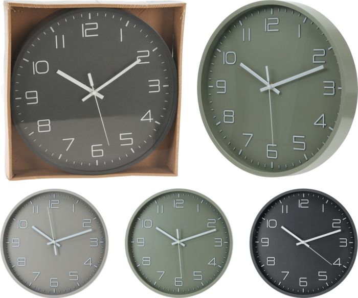 Wall Clock Polypropylene 30cm 3 Assorted