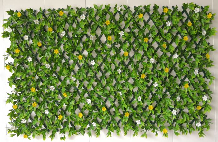 Wonderwall White/Yellow Flower Pe Leaf Trellis - 100 x 200cm are realistic looking artificial plants that are suitable to use both indoors and outdoors. They are weather resistant and UV protected ensuring they keep their colour and do not fade if you are using them outside in your garden. This trellis allows you to instantly add style and colour to a space without the maintenance of a natural garden. This is the perfect product to create instant privacy and can be used to cover any surface.